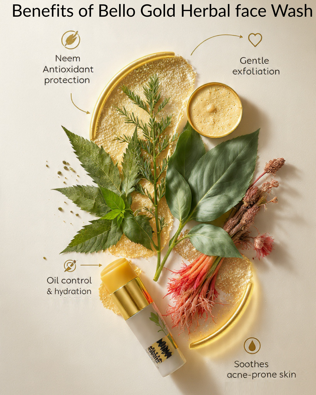 Bello Pure Gold Leaves Herbal Face Wash – Experience the luxury of pure 24K gold combined with nature’s finest herbs.