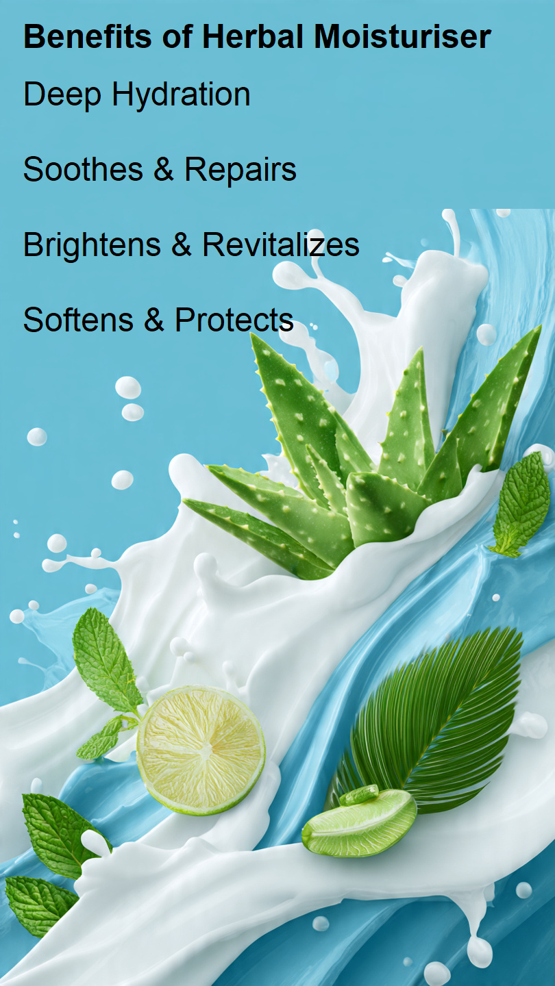 The lotion contains Turmeric, Tulasi, Sandalwood oil, Somaraj, Cucumber, and Orange, a herbal combination known for their soothing, antioxidant, and skin-refreshing properties. These ingredients work together to nourish the skin, reduce dryness, and support a clearer, brighter complexion.